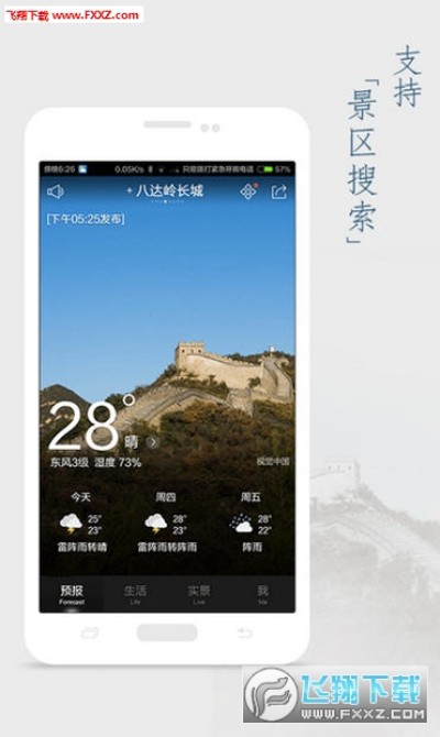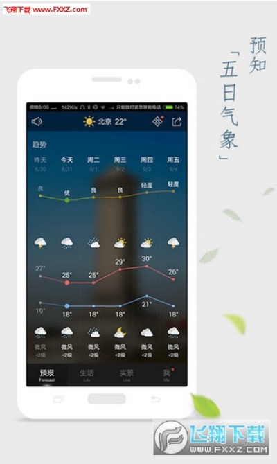 预报信息——24小时天气及温度预报;未来天气信息及趋势对比;支持2486个国内城市区县和676个国际城市。