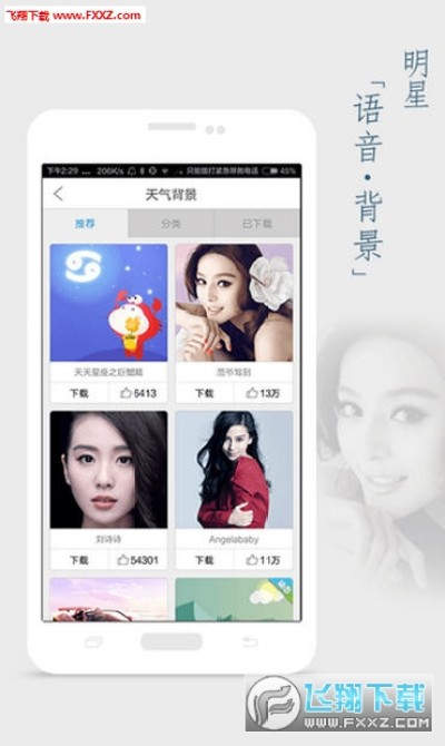 明星语音——更有Angelababy、邓超等124个明星及方言特色语音,为您播报每日天气。