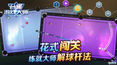 5、丰富多样的关卡,游戏中有多达上百种的关卡,不仅仅有经典的8球模式和斯诺克模式还有各种各样的花式台球。