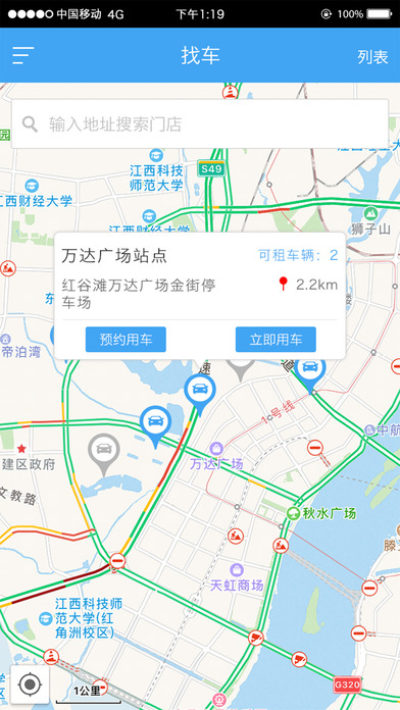 南昌共享汽车是一款新能源汽车实时的分时租赁APP,以移动互联网为基础,结合GPS定位与车辆终端设备,实现用户查车、租车、用车、控车、还车的全程自主化。