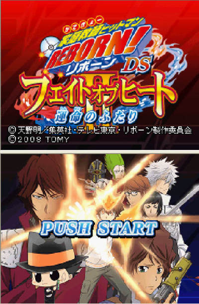 著名的动画作品《家庭教师 Hitman Reborn!》系列即将再次在NDS平台上于4月16日推出最新作品《家庭教师 HitmanReborn!炎之命运2 命运的两人》,在这次作品里,游戏将以全3D的形式描绘出不同的场景、战斗、人物,并且还会有最新原创人物的登场。展开属于未来的战斗,这次作品于最新的杂志图情报中公开了系列作品里最新的战斗系统“盒子卡片”系统,玩家将会在这次游戏里使用了秘含了超过50种以上的强力兵器卡片展开死气火焰所包围的战斗。开盒的重要关键除了使用这些强力武器以外,给自己的角色增加属性值也会是一个重要的部分。