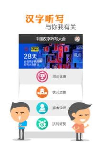 《中国汉字听写大会》APP是由《中国汉字听写大会》节目组官方唯一授权开发的一款教育学习类APP。用户可以在应用里面同步参与汉字同步听写,还可以出题考好友,了解节目的幕后花絮和视频资讯等,同时可以分享到微博和朋友圈。小伙伴们,“键盘时代”已经到来,你是否经常“提笔忘字”?中国汉字听写大会APP,让你涨姿势、涨自信。下载APP,手机参与节目同步书写、趣味汉字闯关、挑战好友均可参与书写的文明传递,并赢取大奖! 全民实时互动参与电视节目:电视中,主考官口播试题;手机上,全民同步书写。同名电视节目播出时间:CCTV1 每周日晚黄金时间,CCTV10 每周五晚黄金时间。