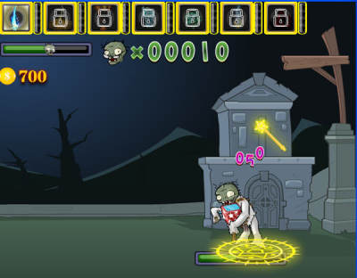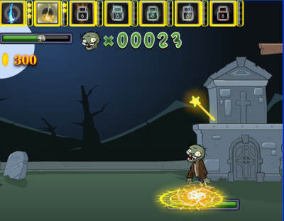 僵尸再次进攻,全新玩法,全新特效,挥舞你的魔法棒打败僵尸。游戏中使用鼠标操作,移动鼠标进行瞄准,点击攻击僵尸。僵尸再次进攻,全新玩法,这次攻击僵尸用的是魔棒,拥有全新特效