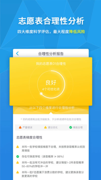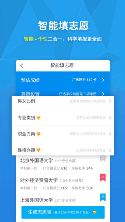 1,采用独有的超级志愿引擎帮助考生筛选自己理想的学校和专业,绝不浪费一分;