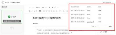 2、进入图文历史版本列表,编辑时间、编辑者、操作内容一览无余。