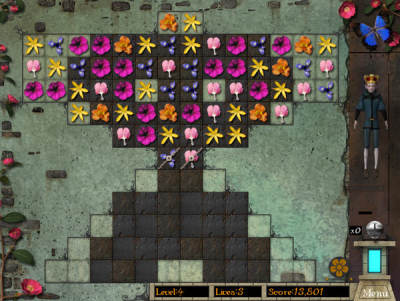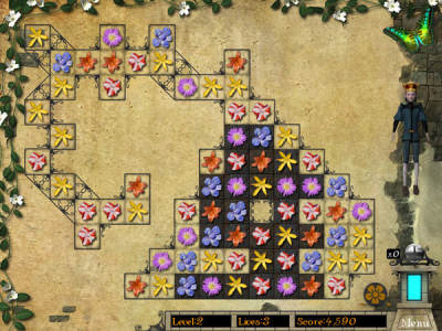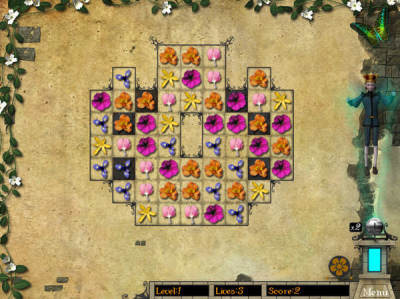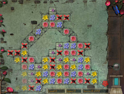 蝴蝶国王算是一款中规中矩的消去类益智游戏,游戏模式为交换相邻方块连接三个以上相同图案消去,游戏背景上有许多黑色的铁板,铁板的方格内消去图案后铁板会掉落,用这种方式消去所有的铁板则通过该关卡。游戏中同时消去五个以上的相同图案会产生一个炸弹,帮助炸掉更多的方块。值得一提的是游戏中的方格大多数是不规则的,这样消去后坠落的方块很难预测,也就给游戏增加了难度。