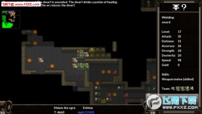 世界是在一个非常详细的关卡上进行模拟的,生物使用设备和消耗品。有很多特殊物品、法术、属性和特殊攻击。你可以砍掉你的头和四肢,失明或毒害你的敌人。如果你不小心着火了,你可以烧毁整个森林,甚至你自己的地牢。