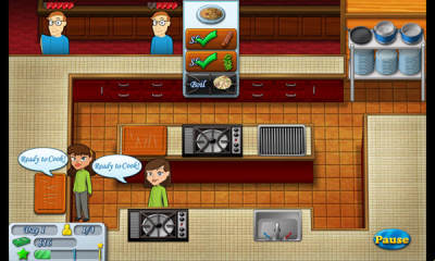 厨师团队是一款极富创意的休闲益智游戏,不同于一般的时间管理类型游戏,你要做的不光是将事情分配给帮厨,同时你也要以小游戏的方式上阵处理食材。游戏的背景为:主角作为一个刚刚从厨师学院毕业并购买了自己餐厅的的主厨,参与了电视烹饪节目,要在66天的时间内解锁并管理7所餐馆,游戏中有超过五十中食谱,包括辣酱玉米饼馅,蛤蜊浓汤,和沙爹鸡肉等等,同时不同的顾客会有着各自的喜好。努力挣钱后还能够增加更多的游戏道具如烤架,微波炉,搅拌机,和更完美的厨房。