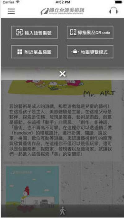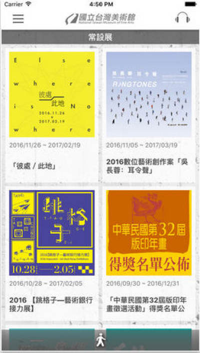 国立台湾美术馆推出「国美馆艺术漫步APP」,运用Beacon微定位技术,经1年半筹画建置,完成国内第1支同时具有室外及室内公共空间设施导航指引,及展览作品语音导览服务的APP,邀民众一起到国美馆探索艺术之美