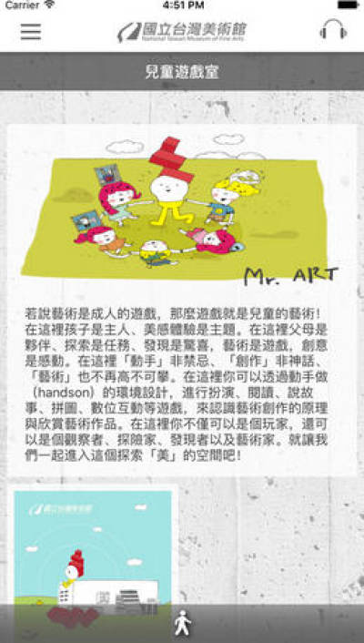 国美馆艺术漫步ios版是国立台湾美术馆推出的手机app,用户使用这款软件可以在手机上直接看各个展厅的情况,还有展览品的语音介绍非常方便,国美馆艺术漫步app目前提供下载,感兴趣的朋友可以前来试试!