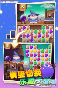 消除糖果来为艾乐瑞的水晶球补充魔力,一旦魔力充盈,艾乐瑞就会召唤强力的糖果怪兽来协助你过关。It's magic time!