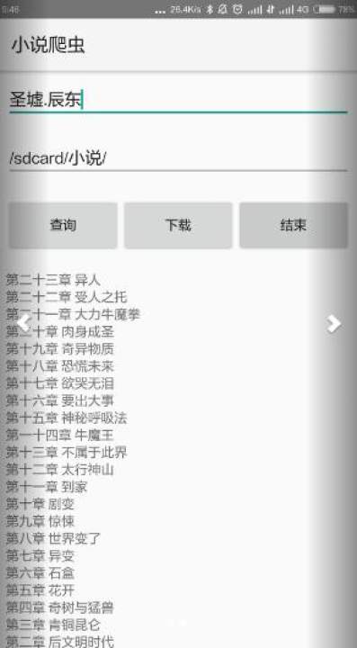 输入小说名查询看看是不是想要的,然后再点下载,支持断续下载