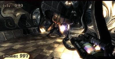 彗星战魔大概是有史以来最小的3DFPS游戏了,这款名为.kkrieger的FPS,是由.theprodukkt小组开发完成。仅仅只有96kb的大小,却构成了一个多个关卡、多类枪械、多种怪物的FPS游戏,不管是超炫的光影表现、实时阴影投射、环境贴图、凹凸贴图...等3D效果一应俱全,加上游戏中的人物、怪物3D模块也建构得很仔细,简直让人嗔目结舌。当然游戏也有一定的缺陷,AI不高、人物受伤时没有反应、射击的精度不高、常常会被没有在路线上的墙挡住子弹,不过考虑到只有96k这些也可以原谅。