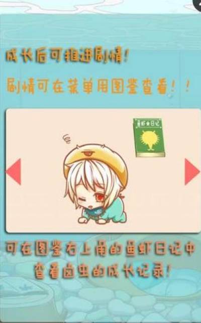 这是一款治愈系的养正太游戏……水族箱上画的明明就是个像小虾一样的卤虫,套装里还有魔法之水和饲料。卵是透明的,就像是玻璃球一样……然而养出来的不是虫子而是个可爱的正太宝宝这是要闹哪样?不但可以随时查看养成日记,等正太养成的时候还有超暖的结局等着你哟(づ。◕‿‿◕。)づ