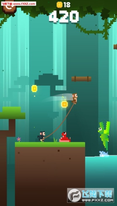 双猴绳Monkey Ropes官方版是一款非常好玩的手机休闲冒险游戏,游戏以两个牵着绳索的猴子为主角,两只猴子将拉着绳子在峡谷上面进行冒险,游戏中不能让猴子掉落下来哦,非常有趣的一个游戏,是时候胡闹了,从一棵树跳到另一棵树,试图逃离丛林,在那里一切都是为了让你!从时髦的鳄鱼饥饿的食人鱼你永远逃避的野生动物!想玩就来下载猴子的绳索破解版吧!