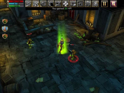 地牢传说的操作方法很简单,甚至玩家只需要单手就可以进行操作。游戏中没有设置虚拟摇杆,也没有设置重力感应操作,而是直接点击想要去的地方,人物就会移动,如果点击两下就是奔跑。在战斗的时候,玩家只需要按照自己的需求点击屏幕上面的技能就可以了,屏幕左边是玩家的血量以及魔法值还有经验值,屏幕右上角则是游戏的系统设置界面以及详细的人物属性界面。