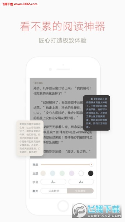 精致而富有美感的版式界面与布局,可调节字号、亮度和翻页效果,带你找回阅读的美好体验。夜间模式,保护你的视力。