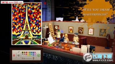 游戏中玩家的任务是帮助开画店的主人完成各种作品,并且通过画店出售,当然画画的所有细节以及具体内容全新由玩家来进行创作。一幅作品完成之后,你就可以为其定价,并且在画廊上进行展示,如果有客人喜欢并且觉得价格合适,就会买下来。这里面起决定性作用的还是玩家的创意以及定价,如果一天下来有些画没卖出去,那么就会被烧毁。所以,拿出你的真诚,为这位可怜的画家走出困境吧!