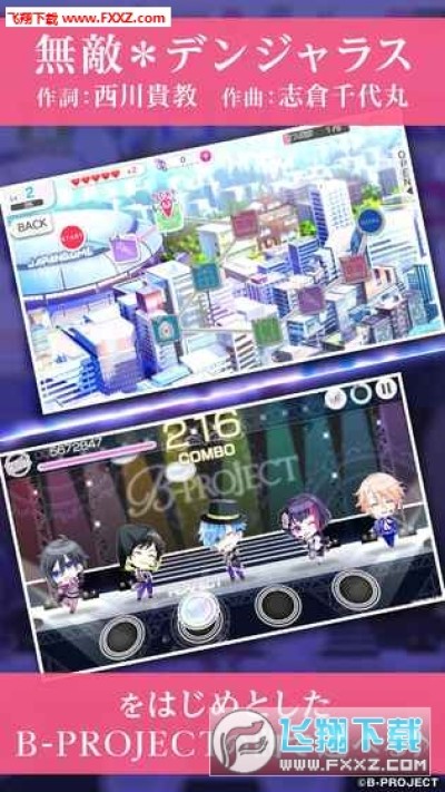游戏中不但将会收录「B-Project」的众多人气乐曲登场让玩家们来游玩挑战之外,之后也将会陆续推出众多新乐曲下载更新,让玩家们能够尽情享受「B-Project」的独特音乐世界。