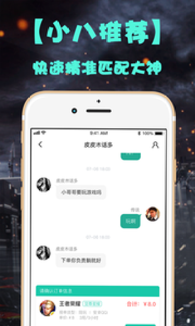 小八电竞是一款致力于让游戏变得简单的移动端社交陪玩app,通过游戏互动、语音交流发现有趣的灵魂,游戏里一起大杀四方的快感,给玩家带来全新的体验。我们有着大神操作带来的视觉盛宴、低音炮萝莉音御姐音满足一切声控的你。