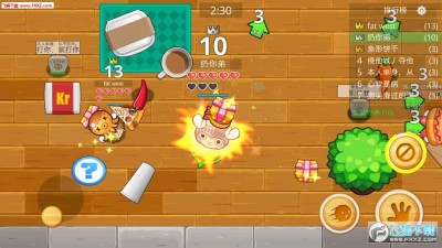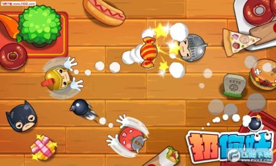 1.举取场景中的各种道具,如披萨、汉堡、红萝卜等,成为自己的武器,扔向对手来发动攻击,打败对手,收割他们的星星!甚至在你狂暴之后,可以举起阻挡你去路的玩意,用它们狠狠地收拾一下你的对手吧!