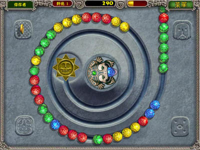 游戏创意虽较简单;但难度不凡。屏幕中的石头青蛙会吐出颜色各异的珠子,与沿着一条轨迹运行的一串珠子相接,一旦三颗或以上的珠子连在一起,则这几颗珠子即可消失。我们所要做的就是尽量消除珠子,以防止珠子滚入轨迹尽头的洞中。珠子落入洞中即为输掉,青蛙将减少一次生命。一共有3次生命机会。在Advanture模式中,每累计到50000分即可获得一只青蛙。