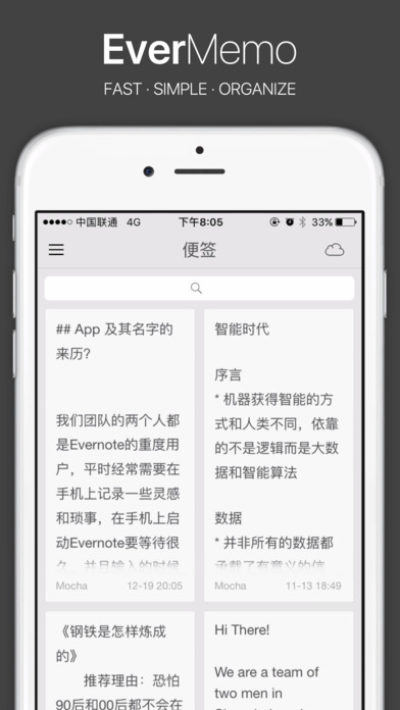 · 通过内置Mocha社区,把有用的Memo与全球EverMemo用户共享