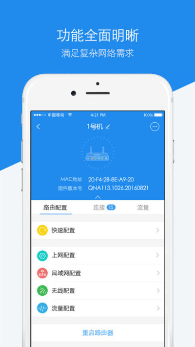 支持路由器所有功能设置,可完全替代PC Web管理界面