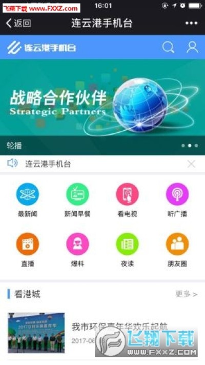 连云港手机台是连云港市广播电视台重磅推出的移动融媒体平台,可提供随时随地观看直播、点播,查询政务资讯、便民服务信息等服务。