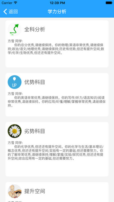 展示市、区、县、班级以及学生的历次考试数据(总分/单科/知识点/能力值)和排名,可横/纵向比较。