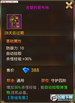3、获得贪婪的哥布林也是如此,它能够提升人物杀怪经验的30%,最好能够在它存在的时间段内,把主线任务做完,如果够时间能够把恶魔深渊打完就更加好了。