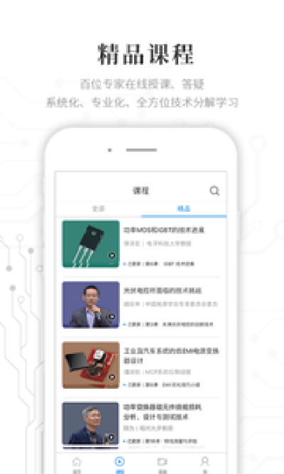 电子研习社是一款针对电子工程师技术培训的手机App,海量培训课程持续不断的更新,随时随地学习技术,是电子工程师指尖上的培训,足不出户就可以在线学习技术。强大的课程更新计划,更新业内专家精心录制的课程,从入门到精通,深入浅出的学习技术。如果您是在校大学生,您可以从入门开始学习系列课程。如果您是刚入职的电子工程师,您可以通过在线课程培训,学习到相关的实战经验。如果您是位电子工程师老司机,您可以通过课程培训交流更深的技术经验。