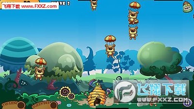 一款有趣的防御射击类游戏,画风很可爱!饥饿的泰迪熊乘着降落伞从天而降,他们抢夺美味的蜂蜜。我们需要帮助小蜜蜂们保卫珍贵的蜂蜜和蜂巢!