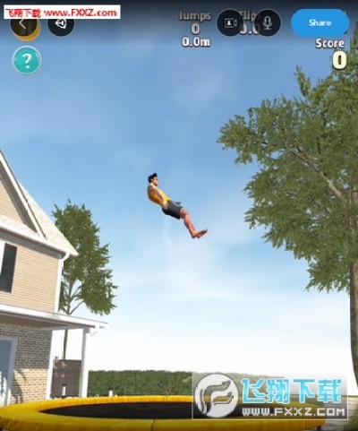 游戏中玩家将操控一个跳床运动员在跳床上体验这项运动,当游戏开始之后,运动员就会自动开始在跳床上开始进行跳跃,当运动员处于腾空状态的时候,玩家长按屏幕即可让运动员在空中做出翻转的动作,而在左右两侧长按屏幕可以控制运动往什么方向进行翻转,玩家在空中做的运动越多越复杂,则在游戏中玩家所获得的分数也就越高,而在下落的时候玩家也同样的需要依靠这种操作,控制运动员下落的位置,尽量避免运动员头朝下落到跳床上,否则玩家就会因为运动员受伤而结束本局游戏。