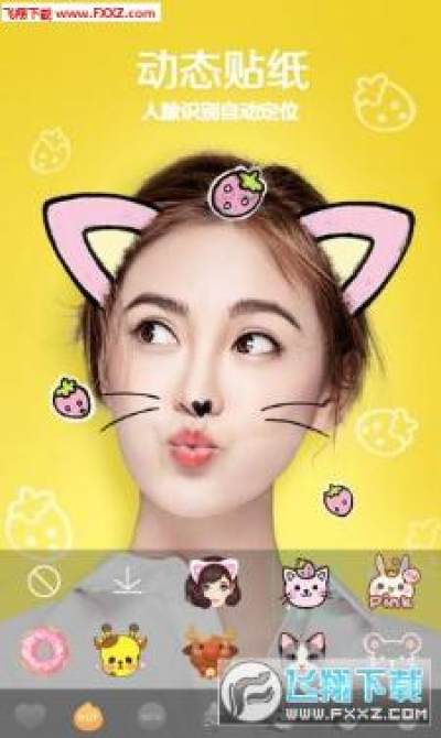 【动态贴纸】 猫须、腮红、兔耳朵动起来,动次打次普通的摇~。人脸识别贴纸自动跑到你脸上,瞬间让你萌萌哒ヾ(*>∀<*)