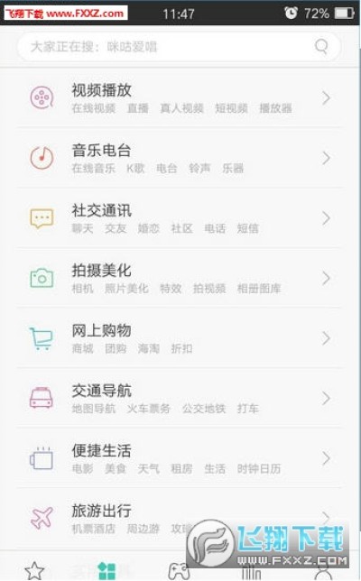 3、应用搜索:强大的搜索功能,特有实时热点、搜索建议和搜索历史功能;