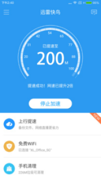 迅雷快鸟升级了,目前全国有23个地区宽带可以提至200M,迅雷快鸟宽带一键提速到200M工具帮你的宽带一键提速至200M,想想200M的宽带速度用起来是不是很爽,不管是追剧还是打游戏,简直是爽到不行,想要一键提速的朋友赶紧下载使用吧。