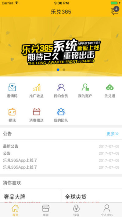 乐兑365是一个大众创业,万众创新消费增值平台;乐兑365分为网上购物商城,实体店、工厂、消费者,为消费者增值、为商家聚客,为工厂提供稳定的销 售渠道。