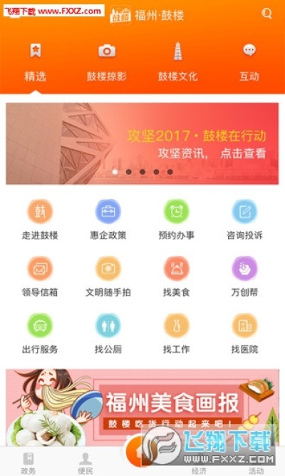 页面设便民、经济、政务、活动四个板块。其中便民功能内容丰富,集合了公交线路、公交车辆位置查询、长途汽车购票、全市路况同步、违章查询、航班动态等功能,并有停水停电通知,五险一金查询等政府、国企或事业单位服务,还接入美团、饿了么等共享平台,提供家政服务、在线求职、房屋出租、公厕查询等实用功能。点击教育模块,鼓楼区属的幼儿园、小学、中学划片、招生信息都能轻松查询。