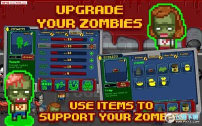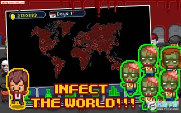 你的目标就是将全世界的人类都感染成僵尸,通过升级你的僵尸属性、购买新种类的僵尸、道具来达到你的目的!有十余种僵尸等着你去开发!