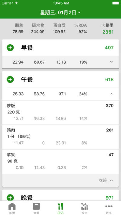 - 食物日记帮助您计划和记录您所吃的食物