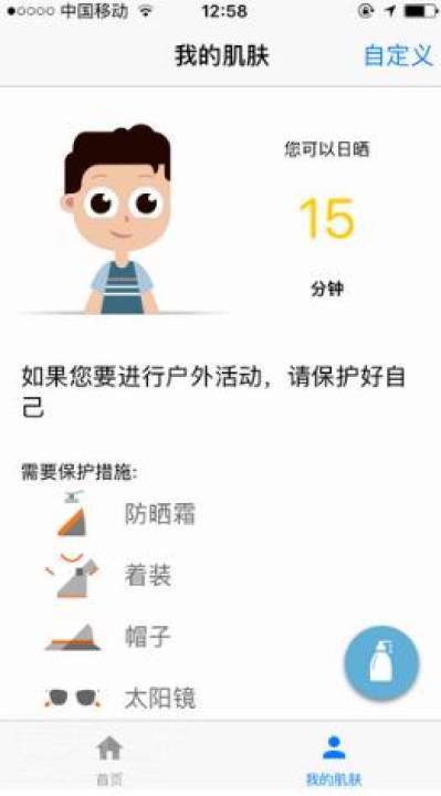 在「我的肌肤」中经过对皮肤的一番评级后,UVLens 会告诉你可以在阳光下晒多长的时间。UVLens 可以在防嗮霜快失效的第一时间提醒你。