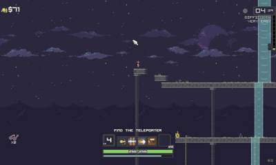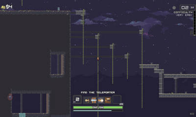 《雨中冒险》是一款横版动作类Roguelike,目前仍处于测试阶段,初始只有2个职业——指挥官(Commando)和矿工(Miner)。音乐暂无,画风为点阵像素风格,但不影响其游戏性。虽然游戏的体积不大,但是道具与怪物种类都极其丰富,与大部分Roguelike游戏类似,打怪或开宝箱所获得的道具,遇到的BOSS,都有着很高的随机性。