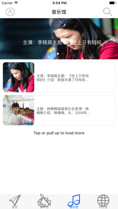 和平青少年宫手机APP,手机上的美术馆,音乐馆,科技馆,可以随时随地的浏览馆藏信息。采用3D 虚拟现实浏览少年宫全景。音乐馆,聆听美妙的歌声,观看精彩的表演。