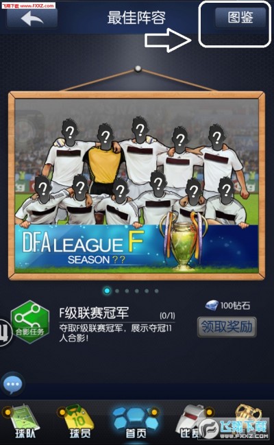 第二步,点击右上角“图鉴”按钮,进入球队图鉴界面;