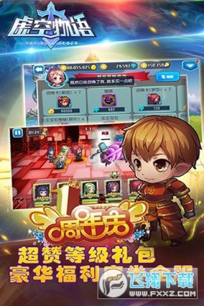 海贼、死神、火影新英雄时空乱入,一起回顾动漫经典!策略对抗、经典养成呆萌二次元动作卡牌手游《虚空物语》周年庆典版本强势来袭,海量周年福利乐享一夏。全新章节、更高等级开放,加入新式原创背景,挑战攻竞技极限,攻略之路再启航;扫荡功能全开放,省时更省力,给你不一样的游戏体验。多重福利爽翻天!全新等级礼包等你来拿,公会活跃奖励送不停!《虚空物语》周年大庆邀你一起,战力觉醒焕然新生!