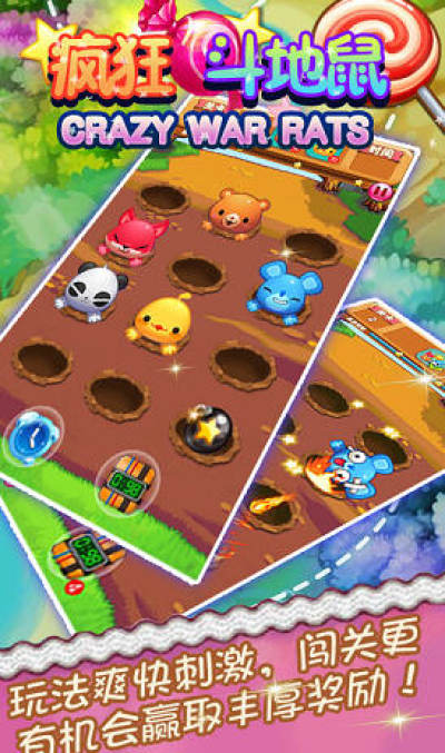 在游戏中玩家需要通过打地鼠获得一定的分数才能进入下一关卡,游戏的玩法非常经典。在规定时间内,打击从地下冒出的可爱地鼠,看谁打的又快有准!当游戏开始时,地鼠会随机从洞中冒出,游戏的目标就是用手指点击地鼠,使地鼠回到洞中。赶紧准备好来打地鼠吧,别打碎屏幕哦~~