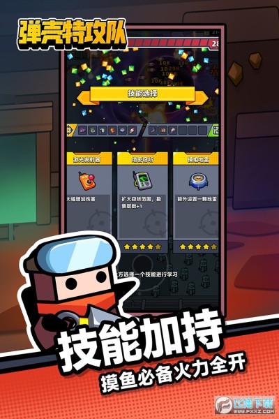 弹壳特工队官方版下载最新版是一款Roguelike类的休闲益智手游。玩家会在游戏中遇到各种道具,例如无人机,时尚最炫酷的技能,各种装备,还有宠物猫,可以发射各种有趣的特效,增加游戏体验乐趣。