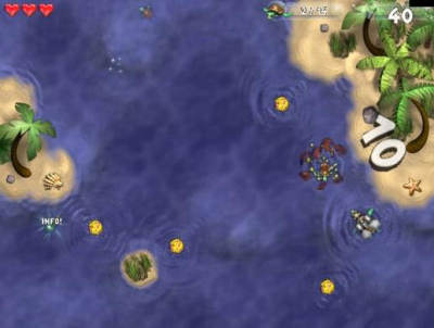 海战游戏的千奇百怪让玩家操作什么水生物都不奇怪了,这次玩家在海龟湾中需要擦做的自然是一只装备精良的还贵了。海龟湾原来是海龟们的乐园,如今却被大量章鱼入侵。游戏中你操纵一只装备了涡轮推进器和破冰机的海龟与这些侵略者对抗,并拯救其他的海龟。游戏画面精美,操作简单,你需要在章鱼变成球状繁殖的过程中将其破坏即可过关