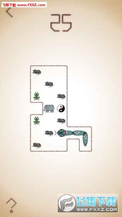 在方格中一步一步移动贪吃蛇,吃掉所有其他动物。当然,和贪吃蛇一样,每吃掉一个动物,蛇就会变长一格。吃光所有动物后,再到达出口,就可以获得胜利。